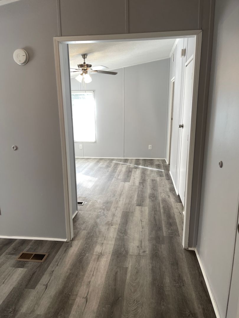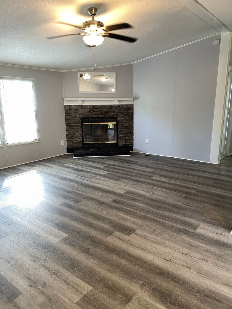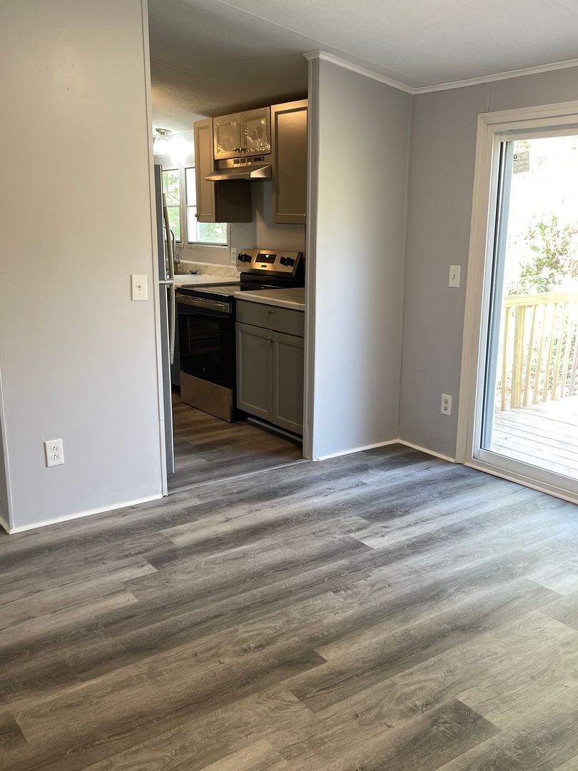 Renovated in Carrollton. The home large front yard and long gravel driveway. Inside you will find a large living room with corner fireplace and adjoining dining area with sliding doors to private backyard. Kitchen has new cabinetry, countertops and all new appliances with large eat in area. Laundry room and addition access to backyard. Primary bedroom is off living room and features large sitting area, walk in closet, ceiling fan and spacious ensuite with separate shower and large soaking tub.  Secondary bedrooms are on opposite side of house and have new ceiling fans and spacious closets. Hall bath is conveniently to bedrooms and living room. This home had new paint and flooring throughout as well as updated lighting package. Power is serviced by Carroll EMC. Water is serviced by Carroll County Water Authority. Renter's insurance is required to avoid being enrolled in the $15 monthly liability to landlord insurance. Sorry, no pets allowed.